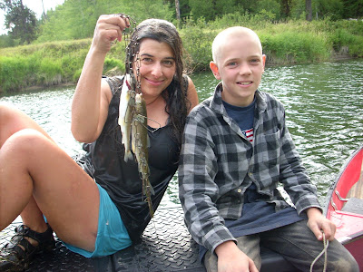 One other highlight of the trip was how much we actually were able to live off of the land. The boys gorged on an abundance of fish. Raspberries, thimble berries, and Oregon grapes along with a host of other berries were thick every where along the trail. We made a wonderful raspberry and raspberry leaf tea with water that the boys also collected from a near by spring. I was impressed that this time, the water they boiled was well filtered and didn't taste like smoke.